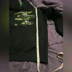 Boys John Deere tractor hoodie size large 14 black with green accents.