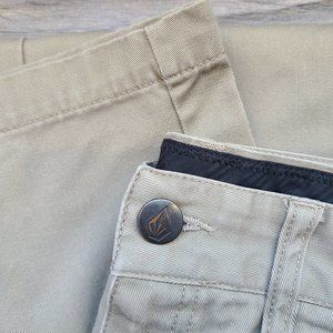 These Volcom's are in amazing condition. The knees aren't even scuffed! (see picture) They are 26/12. Perfect mix between dressy and casual. In case you need to look nice while being practical. They also have a fair amount of flexibility making it perfect for little boys who like to run around. Definitely a great find! Volcom pants are durable and made to last. Definitely worth it!