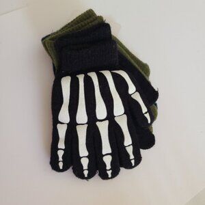 Boys Kids 3 Pack Skeleton Tiger Black Blue Green Fall Winter Gloves