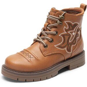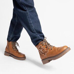 Boys Kids Brown Combat Ankle Cowboy Western Embroidered Side Zipper Booties