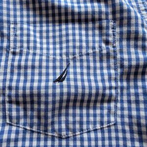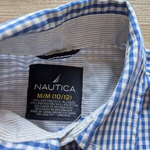 Boys Nautica gingham shirt size M (10-12), measurements on photos. Good quality, soft, and comfortable.