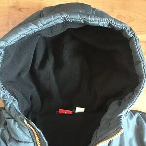 Fully fleece-lined gently used boys winter puffer jacket with attached hood