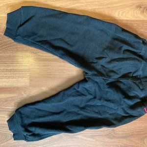 Boy's black sweatpants. Elastic waist with drawstring. Cuffed at the feet. Size 18-24Mos