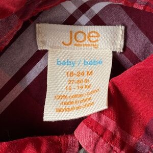 Joe Fresh Red/White plaid long sleeve button down collared shirt - 100%- cotton- Sz- 18-24 months