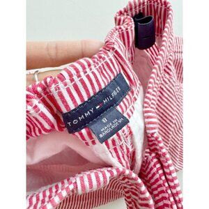 Boys' TOMMY HILFIGER Red White Striped Cotton Seersucker Chino Shorts, Size 8