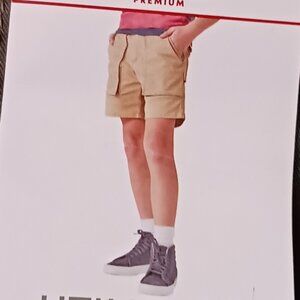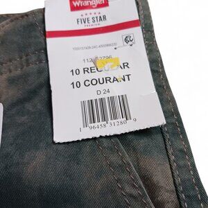 New with tags, these Boys Wrangler 5-Star Premium Camo Cargo Shorts in size 10R combine comfort and function. Made from a durable 98% cotton / 2% elastane blend, they feature a classic camo print, above-the-knee length, and an adjustable inner waistband for a perfect fit. Includes a secure zipper and button closure, belt loops, side cargo pockets, and back pockets with flap and Velcro closure. Great for school, play, or outdoor adventures. Waist measures 13", length 14". Style: 112352796. RN 130273. CA 55394. A rugged and practical choice for active boys.