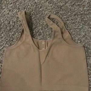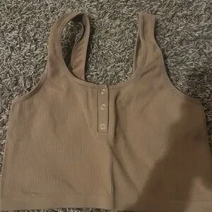 Chic ribbed tank top with button detail. Ideal for layering or casual wear.