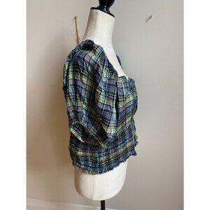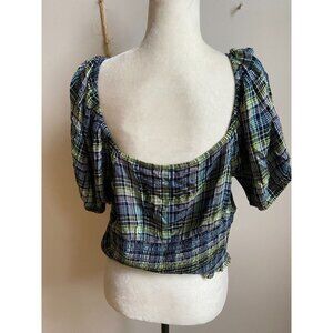 Bp Plaid Corp Top Sz 1X Plus "Veronika" Womens Bubble Sleeve Smocked