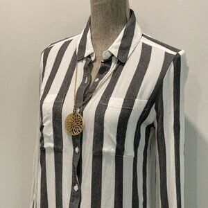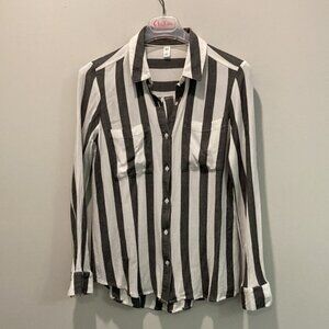 Bp White and Black Striped Button Down Long Sleeve Collared Shirt