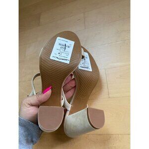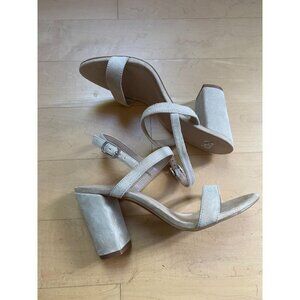 Bp faux suede sandal heels sz 7 - FLAW - mark on front see pic