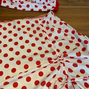 Bra and skirt set, never worn, bathing/sun suit/cover up/white and red polka dot