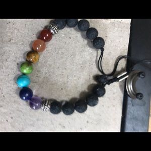 This is a rainbow coloured essential oil bracelet. You rub your oils on it and enjoy a beautiful smell all day. The size is aJustable