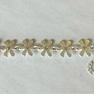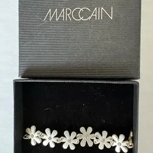 Bracelet by Marc Cain, brushed silver, glass stones, 6” with a 3” extender, original box, never worn, excellent condition.