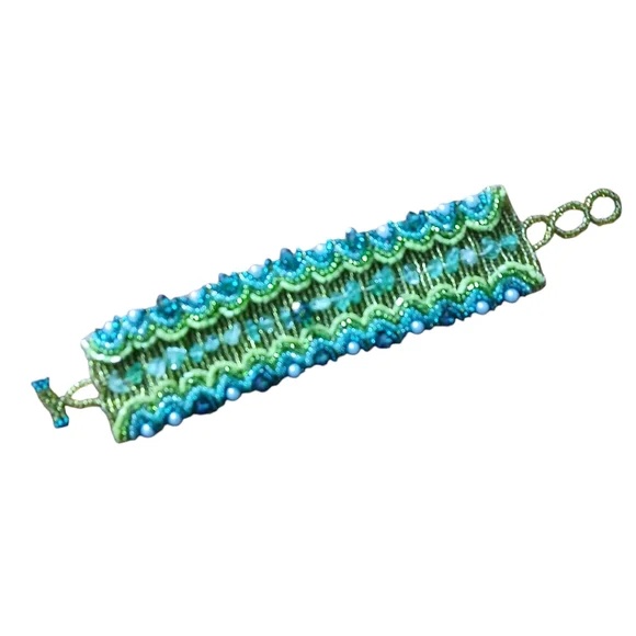 green and turquoise thick beaded bracelet
