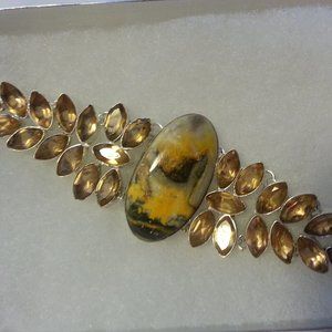 Bracelet 925 silver 7" L. Citrine and bumble bee color. New unused.
