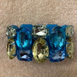 #1 - Turquoise, Blue and Yellow large crystal stretch bracelet.