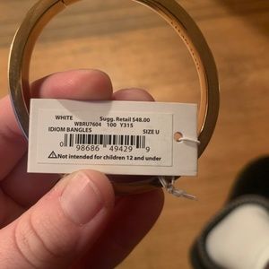 “IDIOM BANGLE” bracelet by Kate Spade in white and gold. One size, magnet closure. Never worn - tags still attached! Cleaning out my closet + priced to sell.