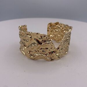 Cuff bracelet, new item, no tags. Durable gold coloured stainless steel resists scratches and fading. This impressive sized cuff, one size to fit most, has a hammered texture and deep V notch for interest and drama. Go classic, boho, prairie, cowgirl, red carpet glam according to your inspiration and event. Finish your look with additional pieces from Our Closet (some suggestions shown, both fashion and fine jewellery), make a bundle to save even more. No American content or handling! Fashion is Fun and Fab with Lemon Squeezy Shop🍋