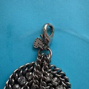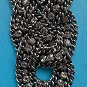 Rhinestone and silver custom jewelry, 7.5" from hook to clasp. A little tarnish, as it is probably 20 or so years old. Beautifully made piece, much brighter in person