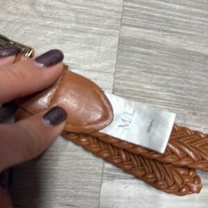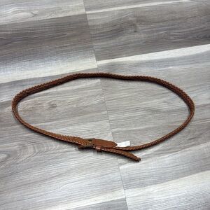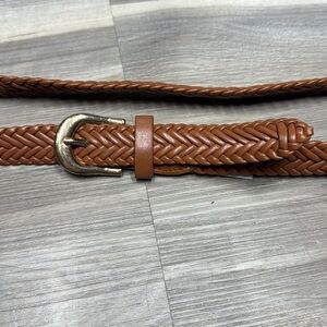 Stylish braided leather belt in a rich brown color. Perfect for adding a touch of elegance to any outfit.