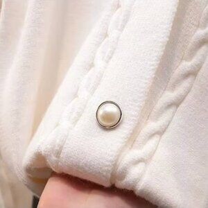 True fitting of this cardigan. It comes with three pearl like button. The fitting is stretchy.