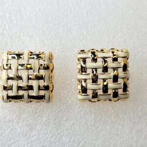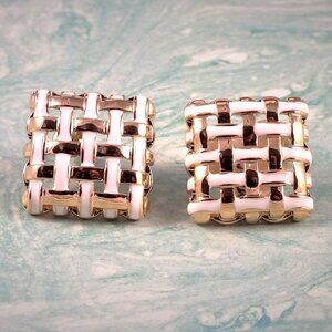 Braided White and Gold Square Earrings