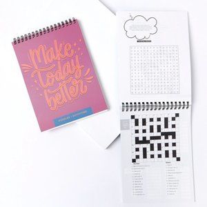 Includes: two books with puzzles, brain teasers, crossword puzzles, and word searches