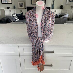 Brakeburn Original Ladies Collection Spots Tassel 100% Modal Scarf/Wrap in Coral Pink Blue NWT