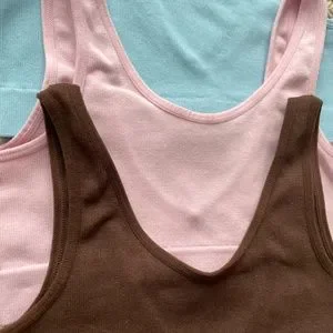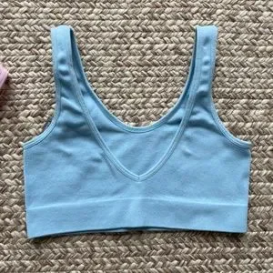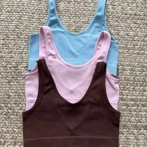Blue, pink, and brown bralettes. Blue one worn once and it’s very comfortable and lightweight. Very stretchy and fun to style!