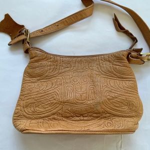 Brama Leather Bag Small Shoulder Tan Native Art Zip Closure Genuine DeerSkin