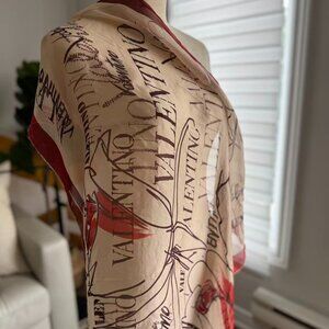 Indulge in timeless elegance with this authentic Valentino silk scarf, featuring the brand’s iconic logo lettering intertwined with delicate floral designs.