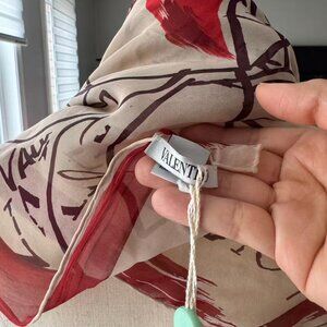 【Brand NEW】Valentino Floral & Logo Print 100% Silk Scarf