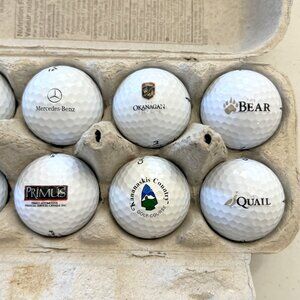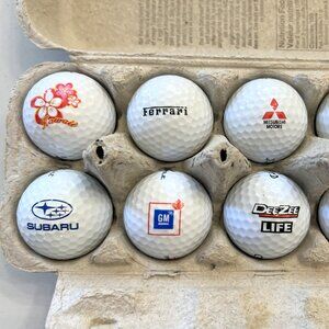 Elevate your golf game with this brand new set of 1 dozen assorted logo golf balls. Carton contains a collection of 12 high-quality, white golf balls, perfectly suited for collectors or players looking to add a touch of variety to their swing. The unique logos on each ball are a great way to personalize your game, while the quantity ensures you'll have plenty on hand for practice or play. These golf balls are ideal for enthusiasts of all levels, from beginners to seasoned players. With a dozen balls to choose from, you can experiment with different models to find your new go-to ball for the course or range. Get ready to hit the links with confidence and style!