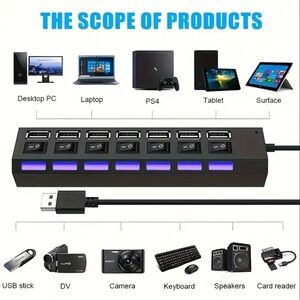 #USBHub #7PortUSB #TechAccessories #USBGadgets #ComputerAccessories #GamingSetup #OfficeTech #USB20 #LaptopAccessories #DataTransfer #HomeOffice #GamerGear #ElectronicsDeals #TechDeals #PortableHub