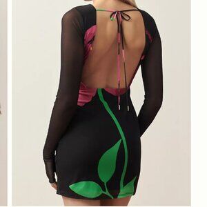 Brand New AFRM Long-Sleeve Tulah Trompe l'Oeil Mesh Mini Dress