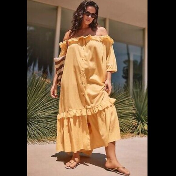 Brand New BY ANTHROPOLOGIE RUFFLE OFF-THE-SHOULDER GAUZE DRESS
