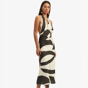 Not a fleeting trend, but an identifiable aesthetic. Event-ready, the Citron Midi Dress unveils a halter-style silhouette in a black and ivory print design. It features a long midi-length in a flattering bias cut with soft movement, a back neck tie and subtle gathering at the under bust.
