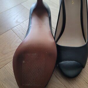 These shoes have never been worn and are in perfect condition, leather. Heel is 9 cm