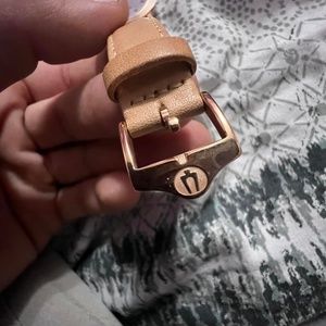 •In stainless steel with rose-gold finish, grey sunray dial, luminous hands, small sweep
