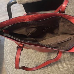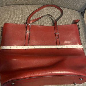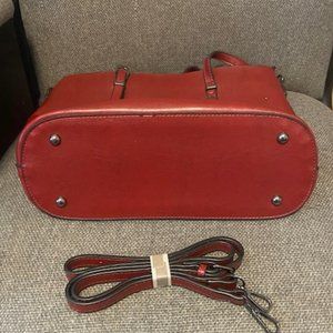 Brand new beautiful nice burgundy shade purse/shoulder bag from Bali my sister bought for my mom many years ago and she never ended up using it. Found it sitting in her closet. Comes with shoulder/crossbody straps. Not sure of the material but it feels like a soft leather but doesn't smell like leather. Possibly vegan leather? Has many inner compartments including a middle larger zippered divider to hold many things like a wallet. Has hidden side compartments on each side of inner bag.