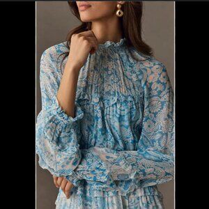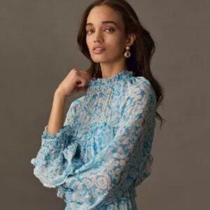 Brand New By Anthropologie Long-Sleeve Backless Sheer Ruffle Mini Dress