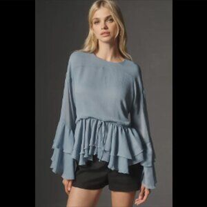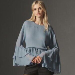 Brand New By Anthropologie Long-Sleeve Ruffled Tunic Blouse