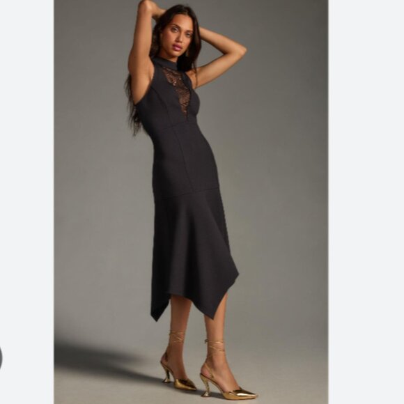 Brand New By Anthropologie Mock-Neck Lace-Inset Fit & Flare Dress