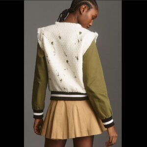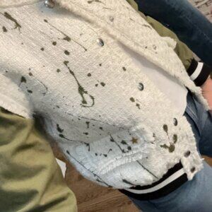 Brand New By Anthropologie Paint Splatter Tweed Bomber Jacket