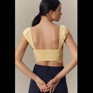 Brand New By Anthropologie Puff-Sleeve Eyelet Corset Top