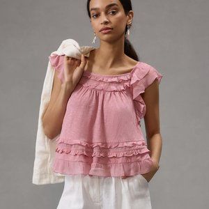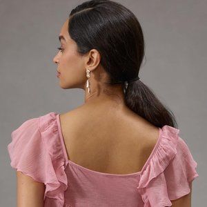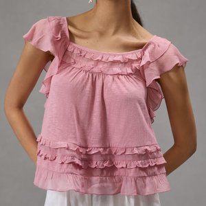 Brand New By Anthropologie Ruffled Flutter-Sleeve Top