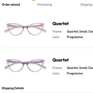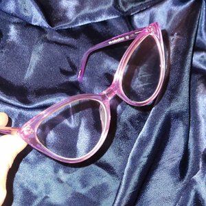 I just ordered these brand new (without tag) +1 progressive glasses last month and immediately took to the pink pair and haven't even worn the purple, they're for you! These were purchased from eyebuydirect for over $100! These are progressive lenses so no need to be taking them off and on all day and good for driving! I LOVE the cat eye style and these ones are the perfect size for a small female head where as most glasses are huge on my face. They'll be mailed to you in the yellow glass cleaning pouch and grey glass case shown.