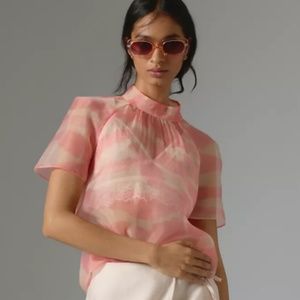 Brand New DANIEL RAINN MOCK-NECK SHORT-SLEEVE BLOUSE