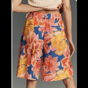 Brand New Farm Rio x Anthropologie Linen Blend Belted Floral Bermuda Shorts