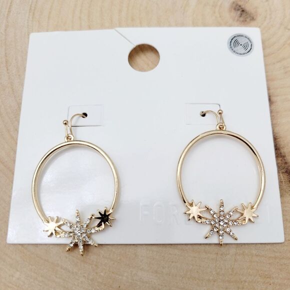 Brand New Forever 21 Gold Snowflake Rhinestone Earrings